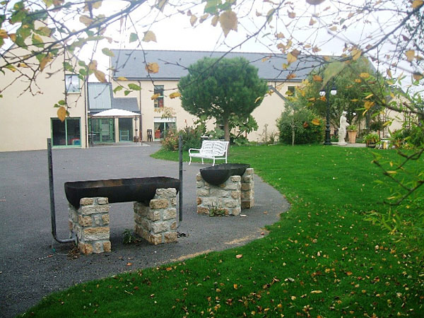 clôturé, arboré et fleuri avec un grand préau en bois fermé en véranda permet la prise des repas à l’extérieur.