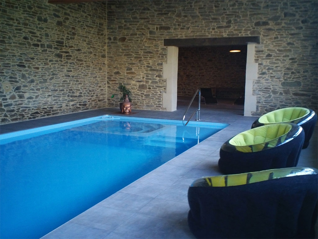 Vous pourrez profiter de l’espace bien être piscine avec spa chauffée et couverte, de la salle de